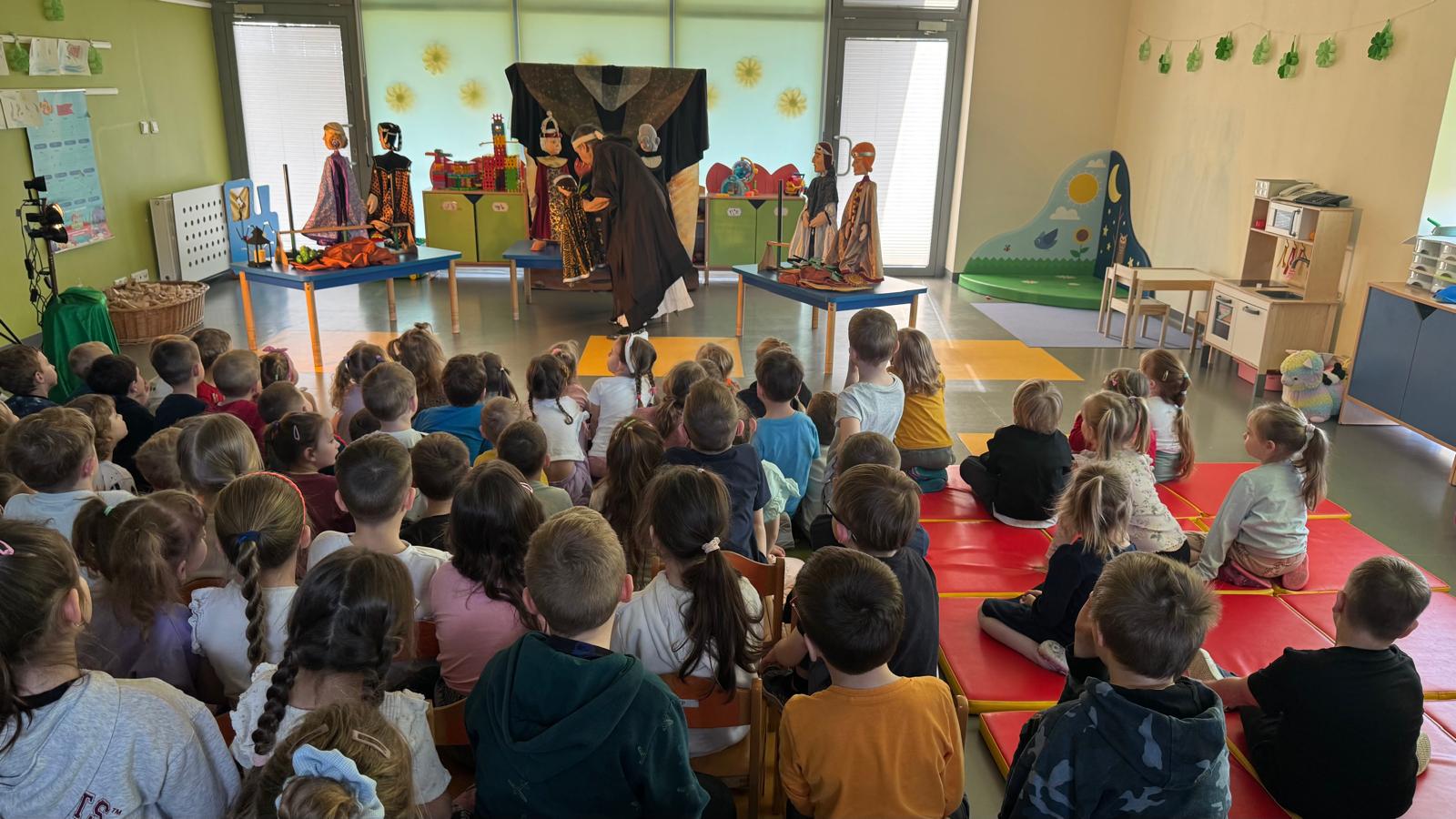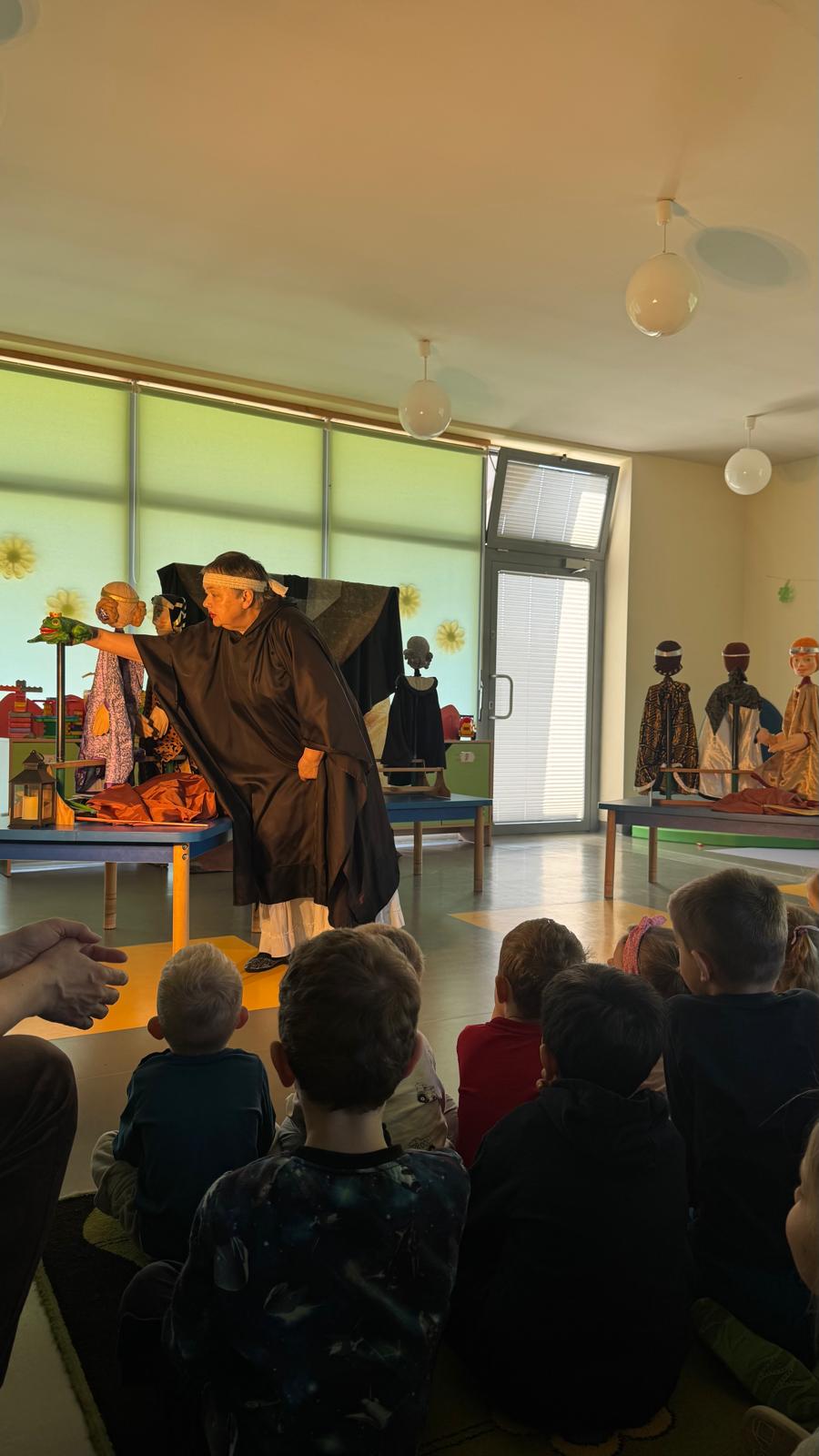19 marca w naszym przedszkolu odbył się wyjątkowy teatrzyk pt. „Królewna Żabka”. Przedstawienie zaprezentowała Pani Krystyna Popławska, która w niezwykle ciekawy i barwny sposób przeniosła dzieci w świat baśni. Mali widzowie z dużym zainteresowaniem śledzili losy bohaterów, aktywnie reagując na przebieg wydarzeń. Spektakl dostarczył dzieciom wielu radości, a także był doskonałą okazją do rozwijania wyobraźni i wrażliwości artystycznej. Serdecznie dziękujemy za wspaniałe przedstawienie!